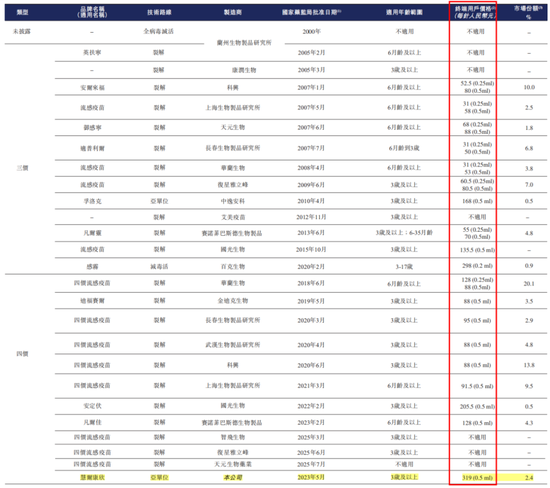 此外,目前国内还有19款流感疫苗处于临床开发阶段,其中13款为四价疫苗(包括11种裂解疫苗及2种亚单位疫苗),更多竞品蓄势待发,慧尔康欣还能否保住“国内唯一”的稀缺性?其定价策略是否会面临更大压力?