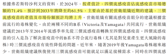 另外,根据世卫组织建议,当前三价流感疫苗可能就足以满足接种需求,预计三价流感疫苗的产值和市场份额将上升,相应地四价份额将有所缩减,也可能会对中慧生物带来一定的威胁。