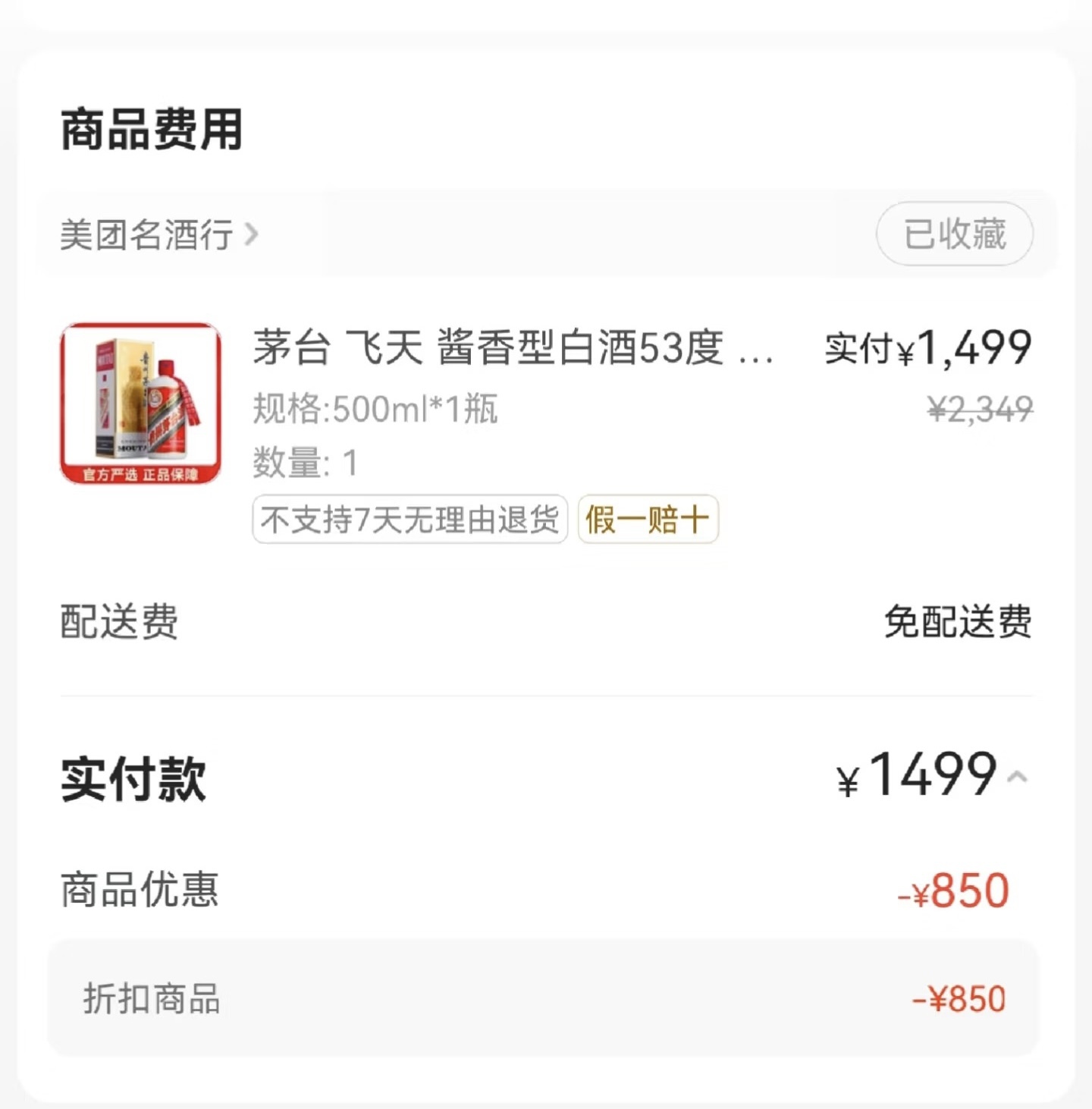 5月28日早上10点,1499元飞天茅台在美团618大促上开卖,10点开售后便火速秒空。